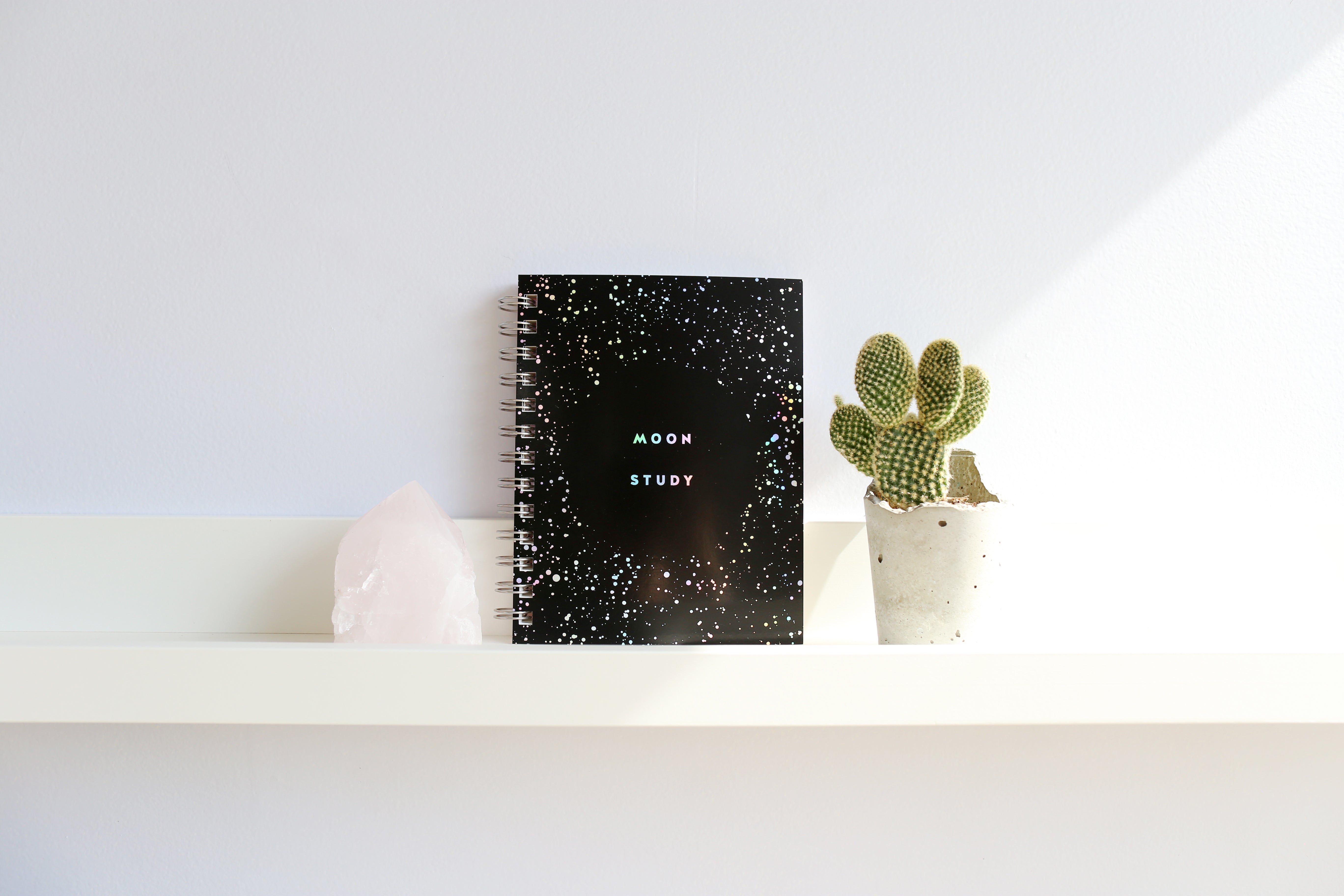 Moon Study is a simple moon phase reflection journal. With minimal structure and instruction, this lightly guided journal is meant to serve as an open container for freely noticing, reflecting & discovering.