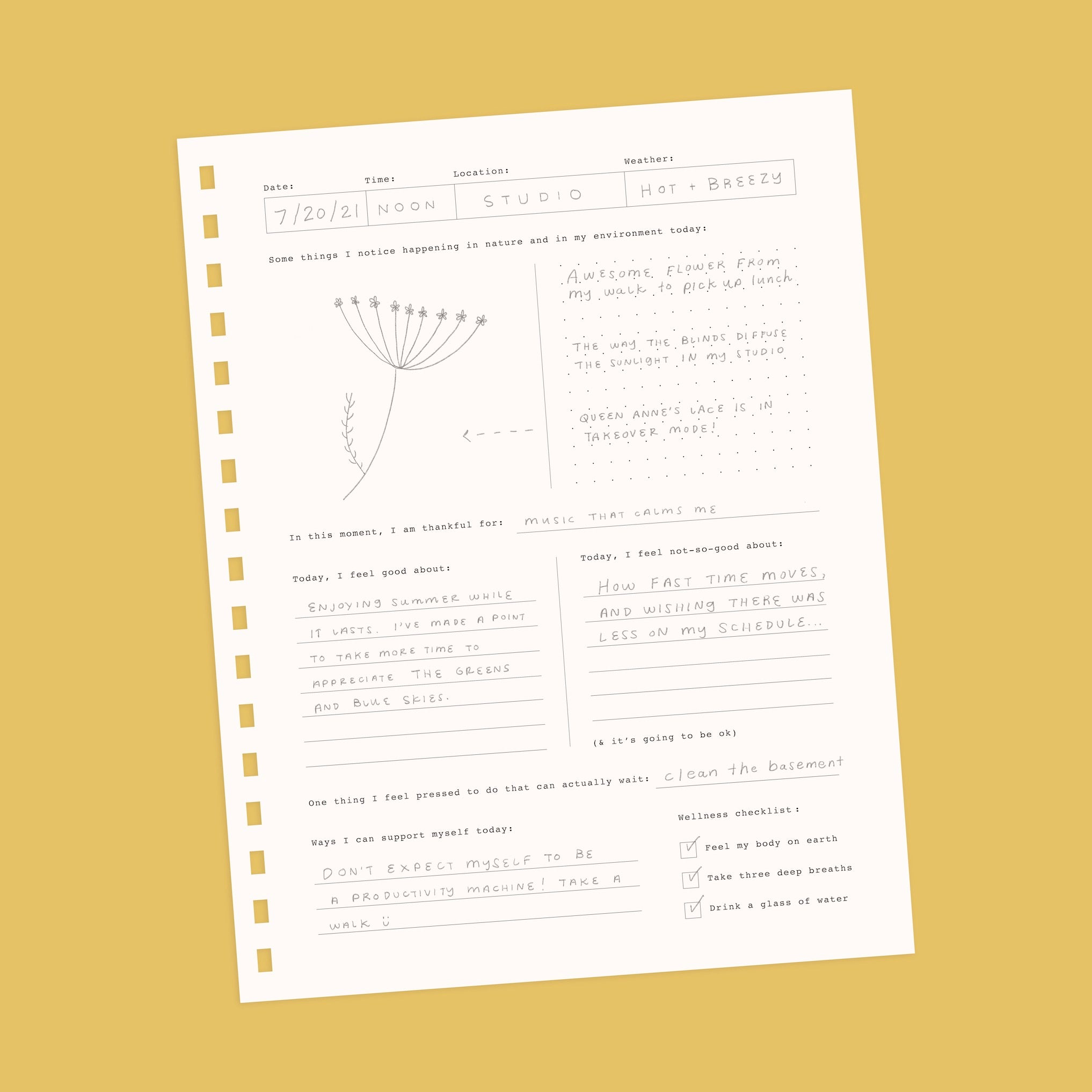 Slowing down and connecting with ourselves and surroundings can allow us to move through this life with clarity, peace, and appreciation. This journal is just one tool to help you find some breathing room within your day.