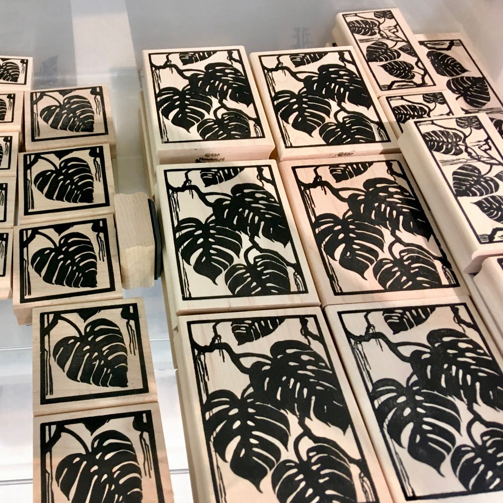 This natural rubber stamp is mounted on a sustainable maple wood handle.